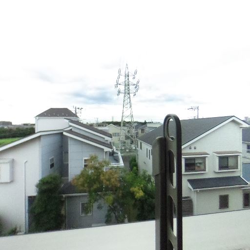 眺望・前方の抜け感(確度80%):正面は戸建て街並みで、視界は比較的開けている。ただし送電鉄塔が見える。