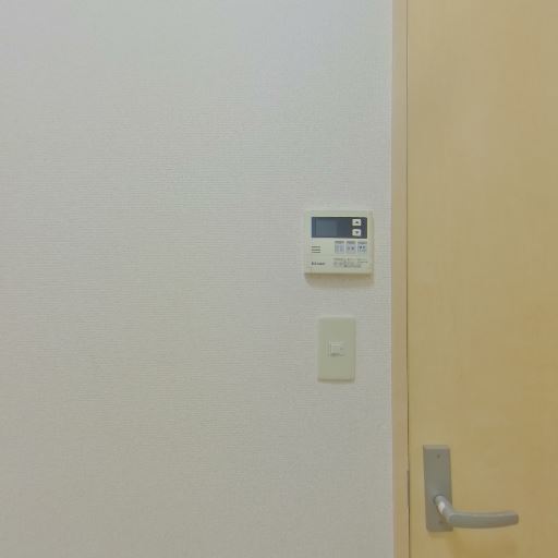 • モニター付きインターホン(または給湯リモコン)(確度64%):壁面に小型の操作パネルが設置されている。