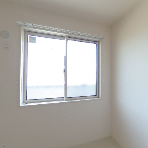 • 採光は十分(確度84%):腰高の引き違い窓があり、室内が明るく写っている。曇りガラスで外からの視線もある程度カット。