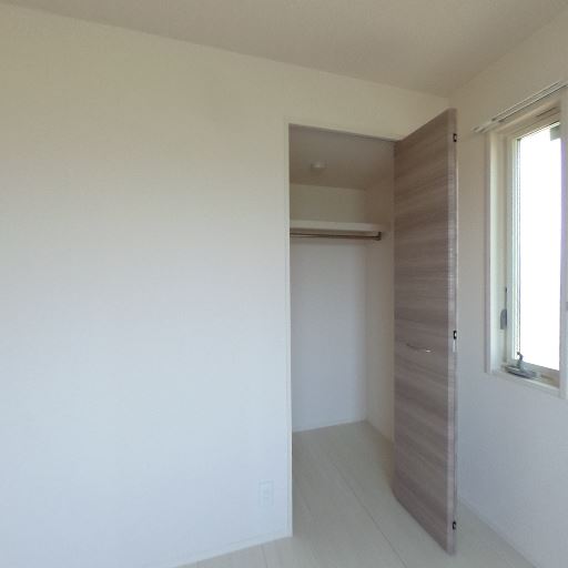 • 小さめの洋室とクローゼット(確度78%):コンパクトな個室で、開き戸のクローゼットが1箇所ある。ポールと棚が備わる標準的な収納。