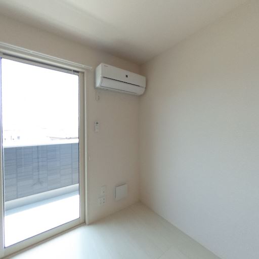 • エアコン設置済み(確度95%):壁上部に据付けのエアコンが確認できる。