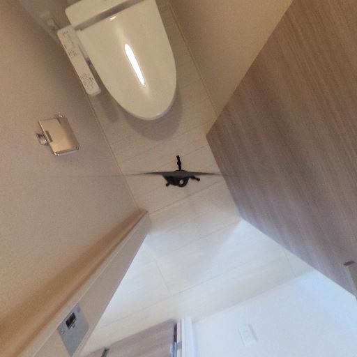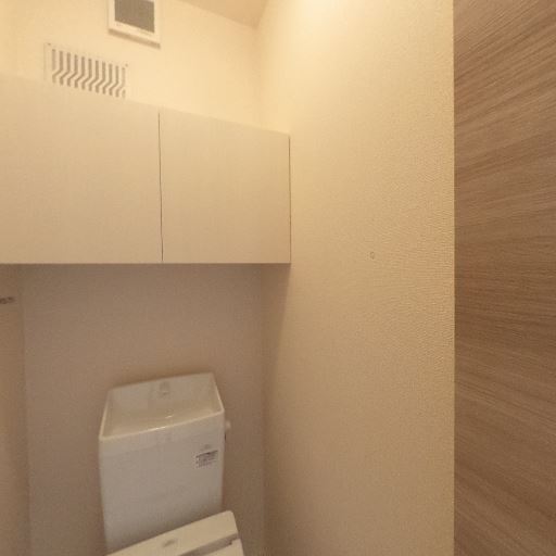 • トイレ上部の収納(確度86%):便器の上に吊戸棚があり、掃除用品やトイレットペーパーのストックをしまえる。
