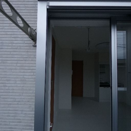 大きな掃き出し窓による明るさ(確度90%):居室側に大きな掃き出し窓があり、室内全体が明るく見える。日中の自然光はある程度期待できる。