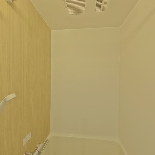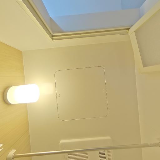 浴室乾燥・換気設備がありそう(確度85%):天井面に換気口が確認でき、浴室の換気や乾燥機能付き設備である可能性がある。湿気対策に配慮された浴室と見られる。