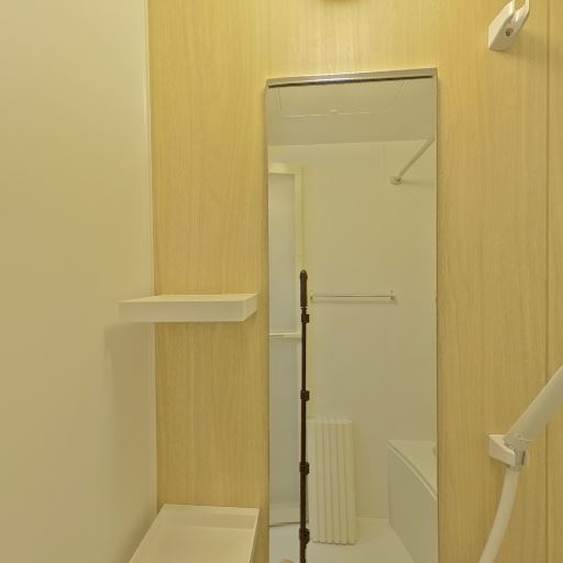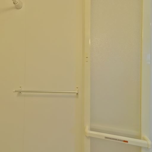 手すり・物干しバーがあり実用的(確度82%):壁面の手すりと、上部のバーが確認できる。安全性や洗濯物の部屋干し用途への配慮が感じられる。