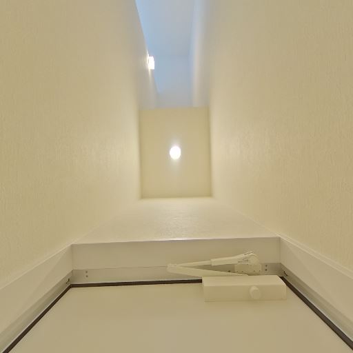 玄関扉まわりの天井が高く圧迫感が少ない(確度76%):扉上部から吹き抜け状に縦方向の空間が伸びており、玄関付近に高さ方向のゆとりがあるように見える。