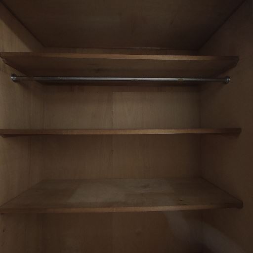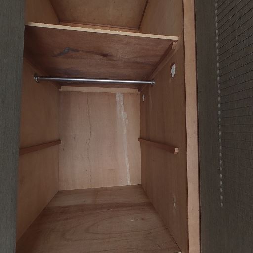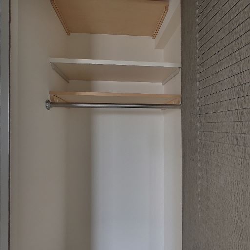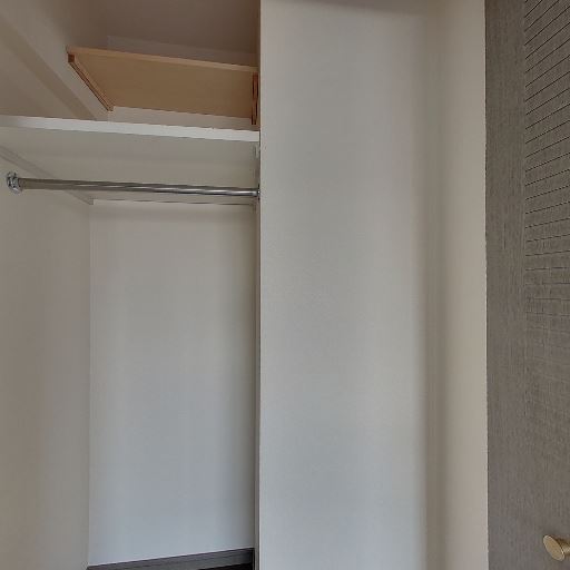 • 収納スペースが確保されている(確度94%):クローゼット内にハンガーパイプと上部棚があり、衣類と小物を分けて収納できる構成に見える。