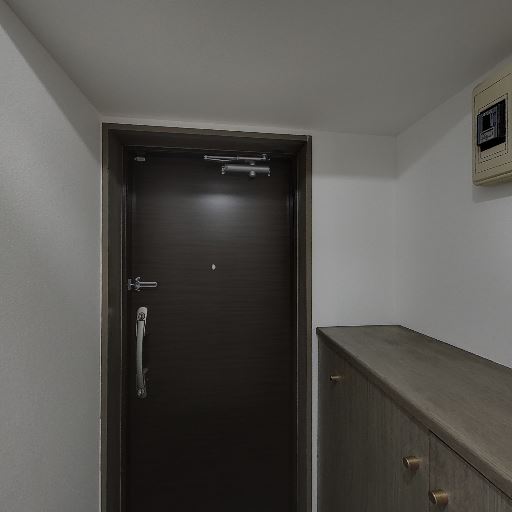 • 玄関収納が備わっている(確度92%):玄関ドア横に高さのある収納カウンター兼シューズボックスと思われる家具が設置されている。