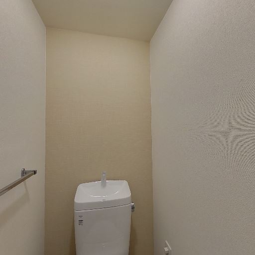 • 清潔感のある比較的新しい設備(確度90%):便器本体や内装建具に目立つ傷みが少なく、温水洗浄便座付きの一体型トイレが設置されている。全体として新しめで整った印象を受ける。