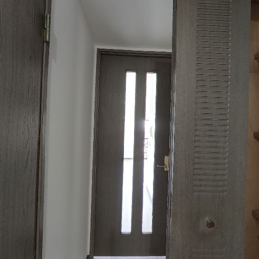 • 玄関まわりが明るい(確度85%):ドアの縦長ガラス部分から外光または隣接空間の光が入り、閉鎖的になりにくい玄関に見える。