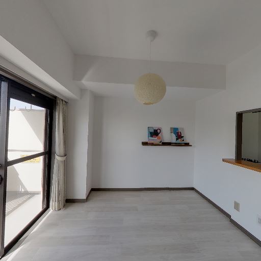 • シンプルで清潔感のある内装(確度82%):白い壁と明るい木目調の床で統一されており、室内全体に清潔感がある。目立つ汚れや大きな損傷は画像上では見当たらない。