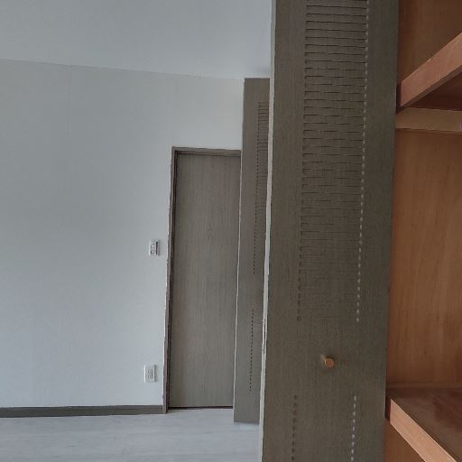 • 収納が備え付けられている(確度91%):折れ戸タイプのクローゼットが設置されており、衣類や日用品の収納スペースを確保できそう。