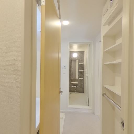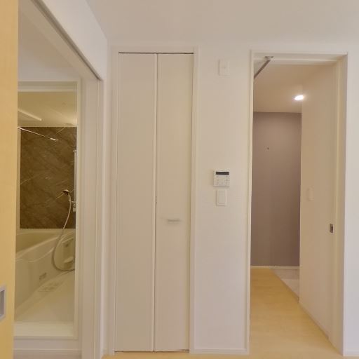 浴室・洗面脱衣側への動線が良い(確度78%):居室・キッチン近くから浴室方向へ直接アクセスできる間取りに見え、水回りがまとまっている可能性が高い。