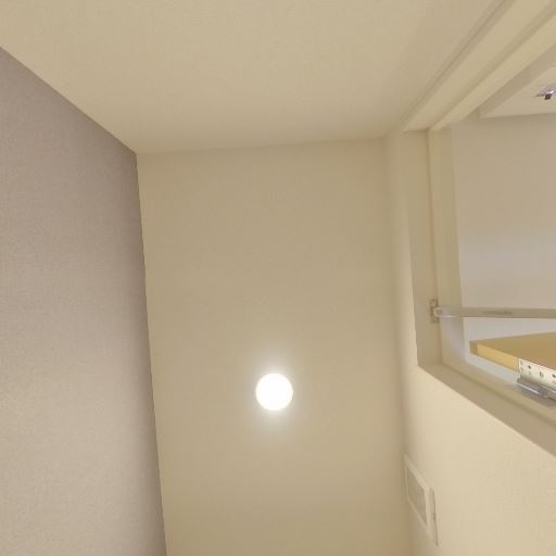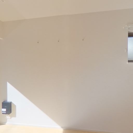 壁面にフックまたは金具が付いている(確度67%):壁の高い位置に小さな金具が2点見え、コート掛けやピクチャーレール用のパーツである可能性がある。