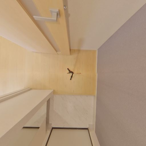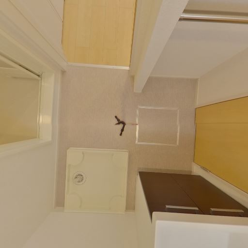 洗濯機置き場が室内にある(確度96%):床面に防水パンと給水栓が確認でき、室内洗濯機置き場として使えると判断できる。