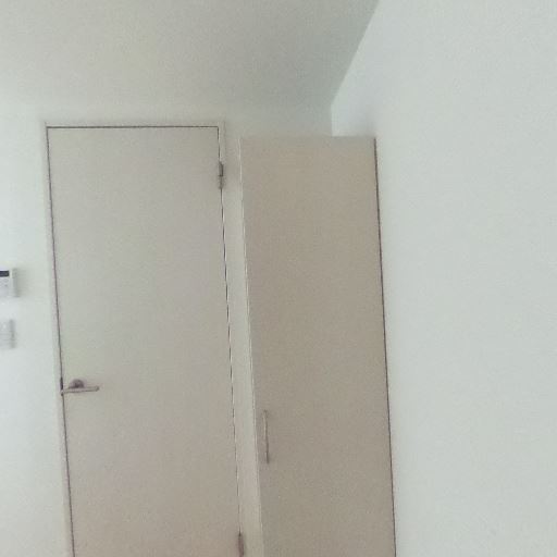 玄関ドアと収納の配置(確度83%):玄関ドアのすぐ横に縦長の収納(シューズボックスと思われる)がある。