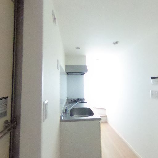 キッチンは一列型でコンパクト(確度80%):シンク・コンロ・レンジフードが一直線に並ぶ単身向けサイズのキッチン。通路は細め。