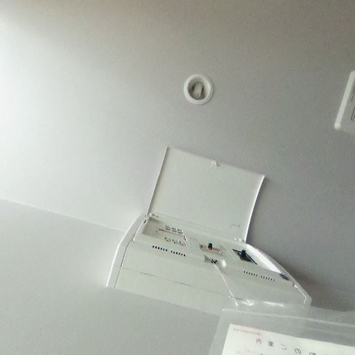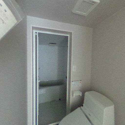 換気設備あり(確度80%):天井に換気扇グリルとダウンライトが確認でき、湿気対策が期待できる。