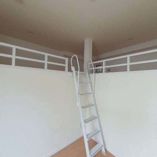 ロフト付きで空間を有効活用できる(確度90%):室内に手すり付きのロフトと昇降ラダーが設置されている。