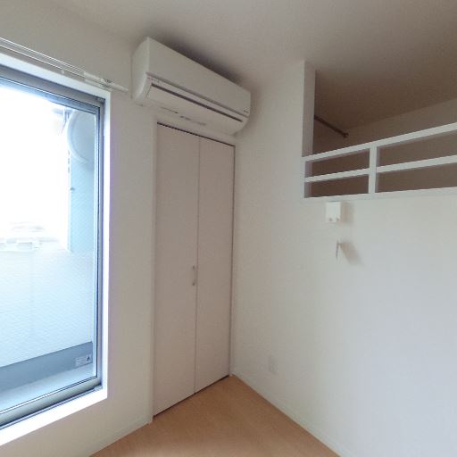 エアコン・収納あり(確度82%):窓際にエアコン、縦長のクローゼット扉が見える。
