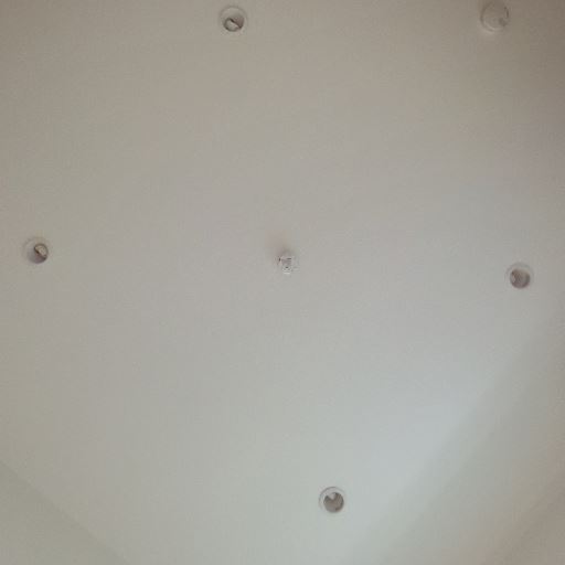 照明器具はダウンライトのみ(確度65%):天井に埋め込み照明が見えるが数は多くない。