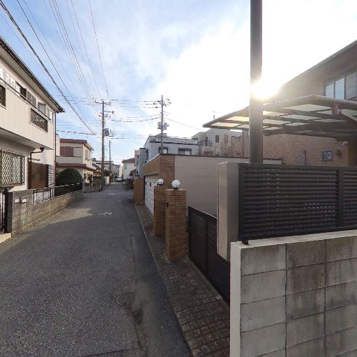 周辺は静かな住宅街(確度73%):戸建てが立ち並び、商業施設や大通りは見当たらない。駐輪・駐車が整然としている。