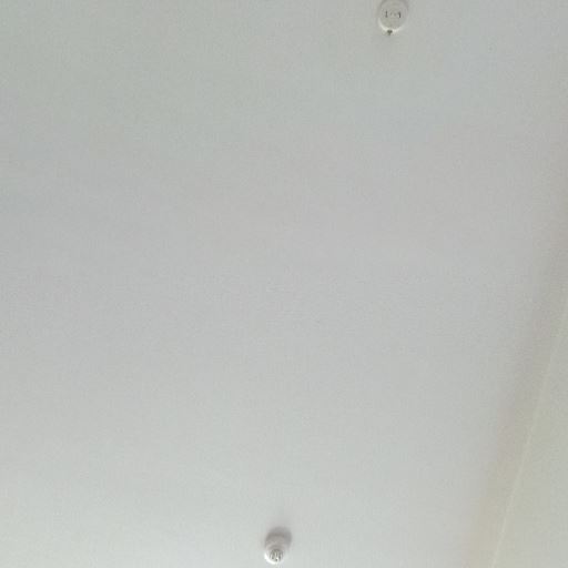 • 天井設備(照明用引掛シーリング・火災報知器)(確度77%):天井中央付近に照明器具を取り付けるための引掛シーリングと、感知器らしきデバイスが見える。