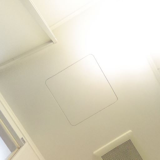 • 天井設備と点検口(確度78%):天井に点検口と感知器があり、照明も複数点灯している。
