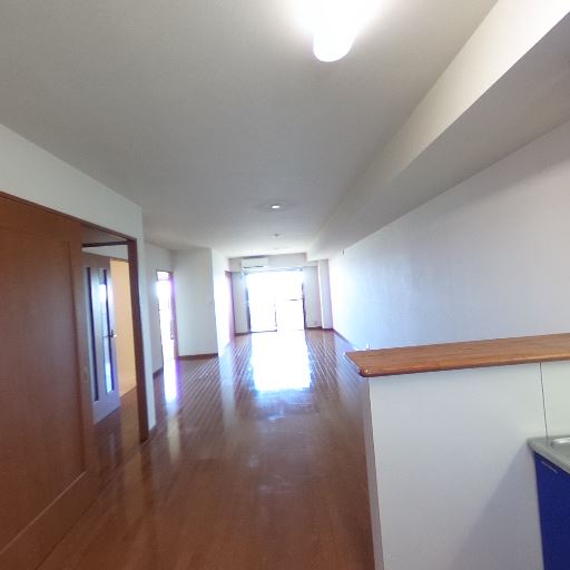 • リビング・ダイニングが奥まで広がるレイアウト(確度78%):キッチンから奥に長い空間が続き、奥側に大きな開口が見える。動線が一直線で見通しが良い。
