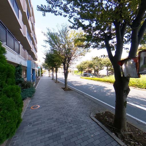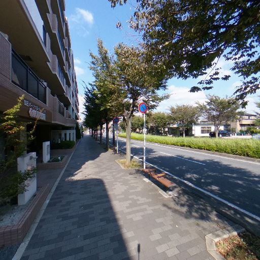 • 歩道が広く整備されている(確度90%):建物前にタイル舗装の広い歩道が続き、植栽帯や街路樹が整っている。ベビーカーや自転車の通行もしやすそう。