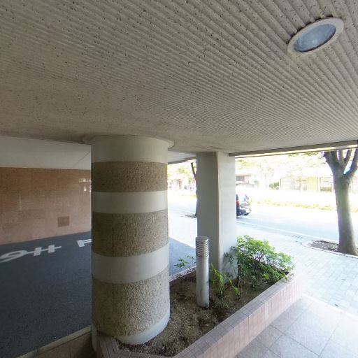 • 植栽スペースと外光の取り込み(確度78%):エントランス脇に小さな植栽帯があり、道路側から自然光が差し込んでいる。