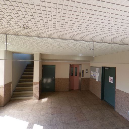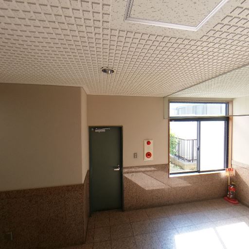 • 共用部エントランスホールである可能性(確度88%):集合ポストや宅配ボックスは見えないが、ガラス自動ドア、階段、エレベーター扉、共用扉が複数あり、住戸内ではなくマンションのエントランスホールと思われる。