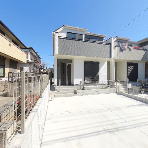 新しめの外観・外構(確度73%):外壁や門塀、サッシがきれいで劣化が少なく、完成直後〜築浅に見える。
