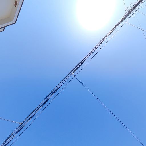 電線の眺望・景観への影響(確度62%):敷地前上空を電線が横切っており、空の抜けはあるが視界に電線が入る。