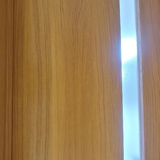 室内ドアと明かり取り(確度82%):木目の引き戸(または片引き戸)に縦長のスリット採光があり、廊下側へ自然光や照明光が回る仕様。
