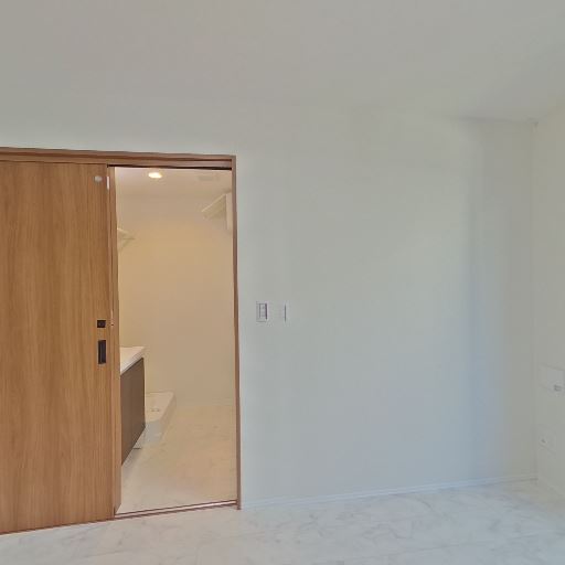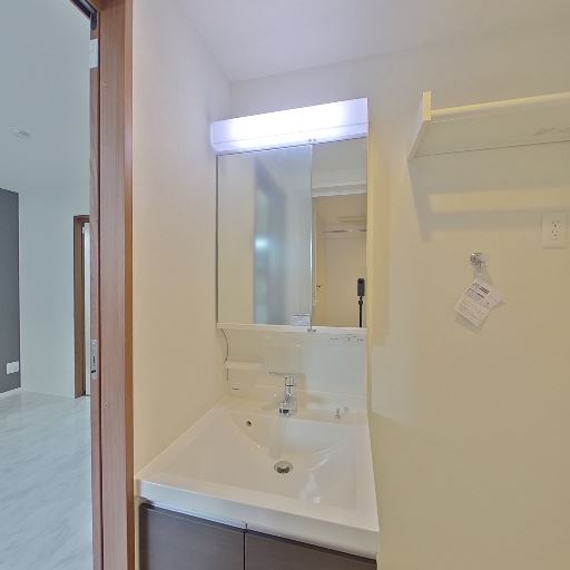 リビングとのつながり(確度70%):洗面室の出入口から居室スペースが見通せる。