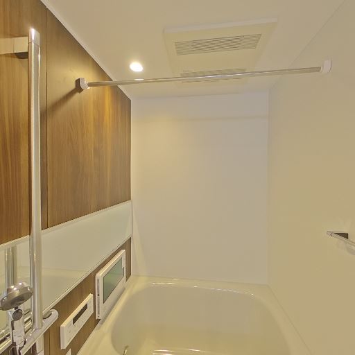 浴室の設備(確度82%):浴槽、手元シャワー、カウンター、換気乾燥機らしき天井設備が見える。