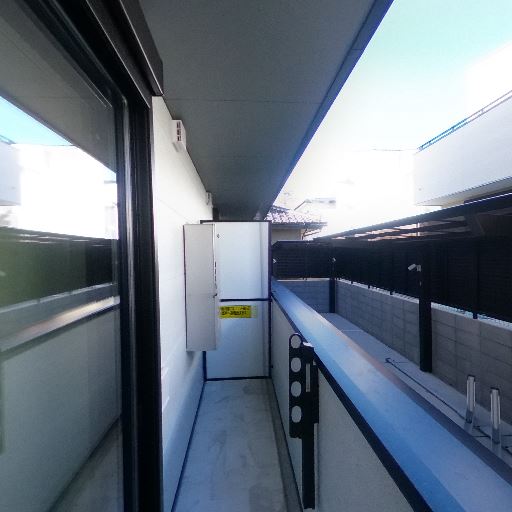 視線・プライバシー(確度68%):向かい側に建物とルーバーフェンスが近く、視線対策は一応されているが距離は近い。