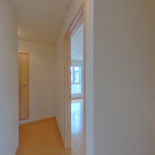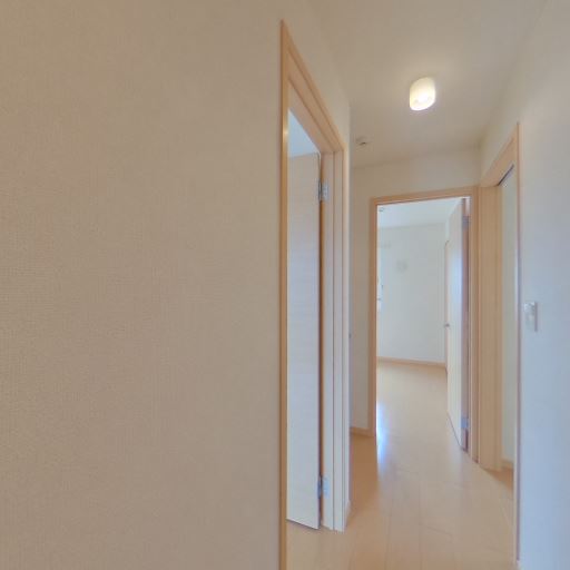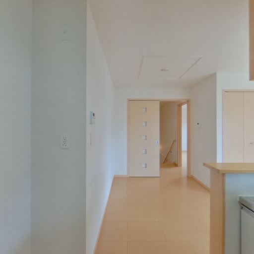 • 明るい木目の内装(確度82%):ドアや床が明るい木目で統一され、廊下全体が柔らかい印象。