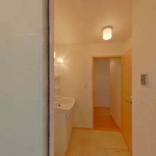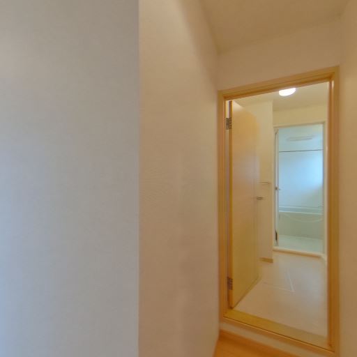 • 洗面脱衣室で浴室直結(確度90%):洗面台のある脱衣室から引き戸の先に浴室が見える。動線が短く使い勝手が良さそう。