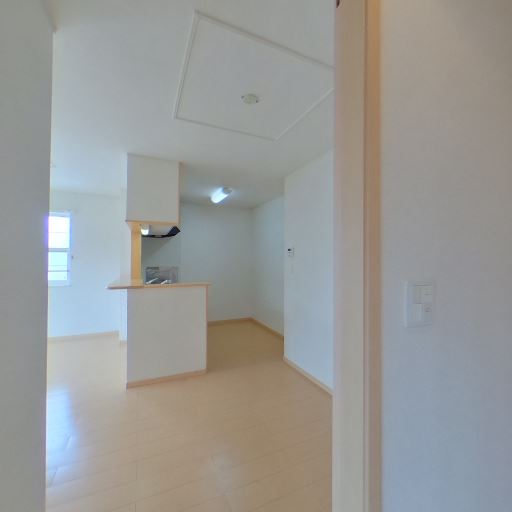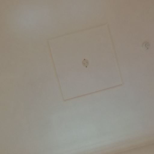 • 天井点検口と照明器具(確度88%):天井中央付近に点検口があり、引掛シーリングが見える。現状は照明未設置。