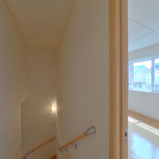 • 階段の勾配と手すり(確度64%):玄関からすぐに階段が上がっており、片側に手すりが設置されている。段差は一般的だが勾配はやや急に見える。