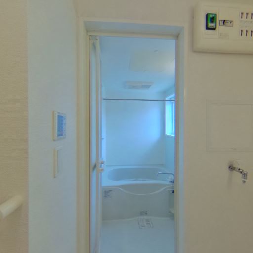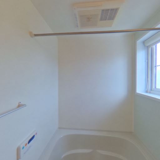 • 浴室乾燥・換気設備(確度86%):天井に換気扇ユニットが見える。物干しバーも設置されている。