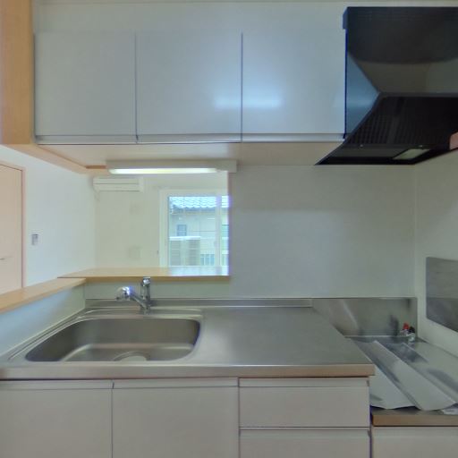 • キッチン設備の充実(確度84%):シンク一体型の広めのステンレス天板、吊戸棚、レンジフードが確認できる。調理スペースと収納が十分にありそう。