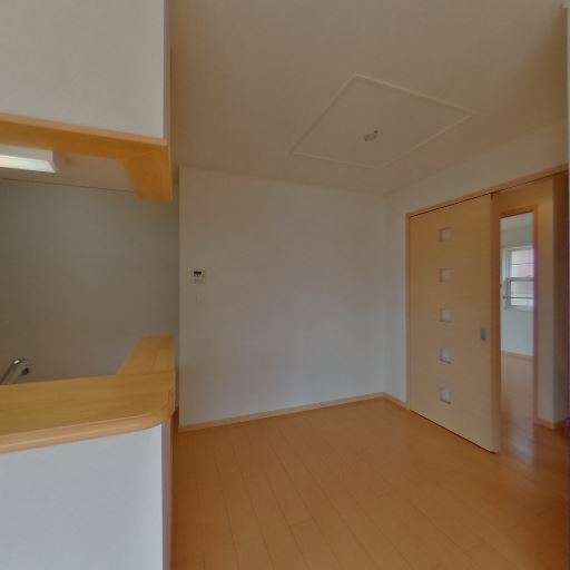 • キッチンの位置関係(確度71%):奥に対面カウンター型のキッチンが見え、リビングとつながる配置。
