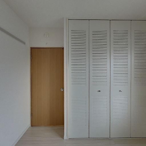 • 収納が充実(確度88%):4枚折れ戸のクローゼットが壁一面に設置されている。