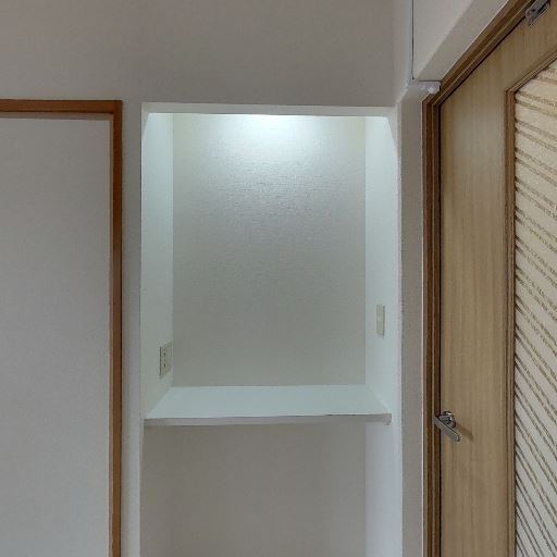 • 小上がり的なニッチ収納(確度82%):壁面に奥行きのあるニッチがあり、中段に棚が設けられている。コンセントも見えるため照明や小型家電の設置が可能。