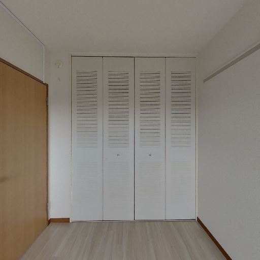 • クローゼット収納あり(確度90%):折れ戸タイプのクローゼットが壁一面に設置されている。