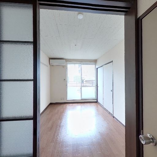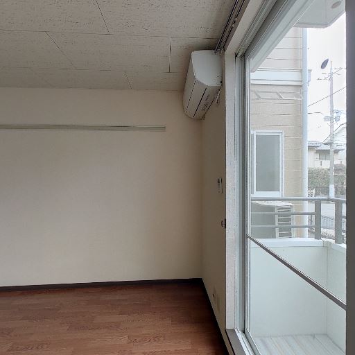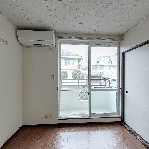 エアコン設置済み(確度95%):室内上部に壁掛けエアコンが見える。
