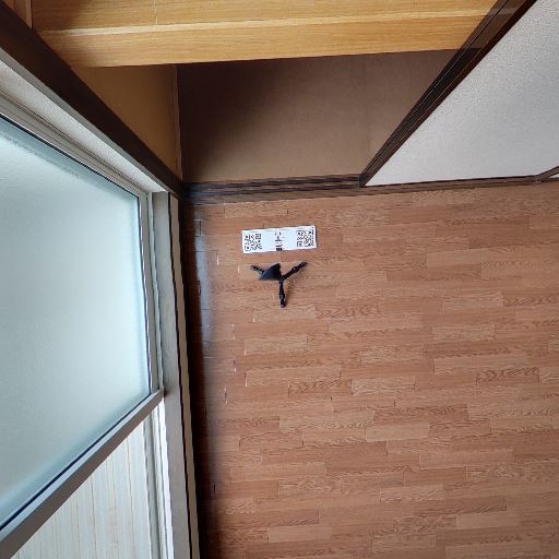 エアコン設置済み(確度86%):窓際の高い位置に壁掛けエアコンが見える。